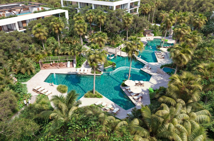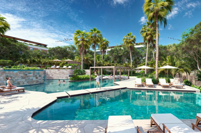 - Albercas en acabado Pebble Tec color beige